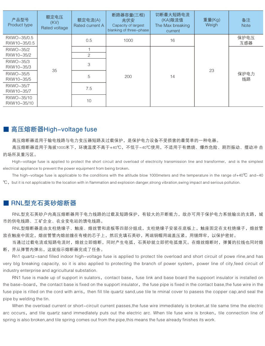 RXW0-35、RW10-35、RW9-35、RXW0-10型户外高压限流榕断器
